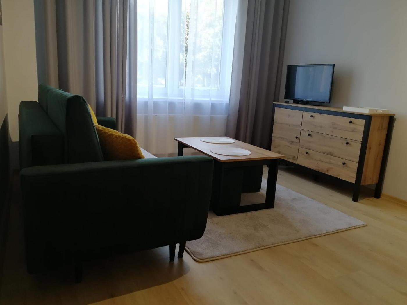 Apartament z 2 sypialniami. This apartment comes with 2 bedrooms, kitchen and 1 bathroom with a shower. The fully equipped kitchen has a stovetop, a refrigerator, kitchenware and an oven. The apartment features a wardrobe, an electric kettle, heating, as well as a flat-screen TV. The unit has 3 beds. Apartament - 6 osobowy. Powierzchnia pokoju ok.: 46 mkw.