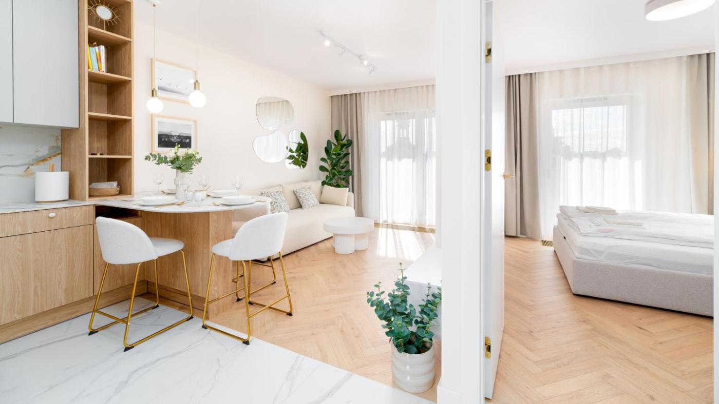 Apartament z 1 sypialnią i tarasem. Boasting a private entrance, this air-conditioned apartment comes with 1 living room, 1 separate bedroom and 1 bathroom with a bath and a shower. Guests can make meals in the kitchen that features a stovetop, a refrigerator, a dishwasher and kitchenware. Featuring a terrace with city views, this apartment also features a washing machine and a flat-screen TV. The unit has 2 beds. Apartament - 4 osobowy. Powierzchnia pokoju ok.: 40 mkw.